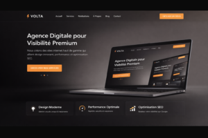 Maquette fictive réalisée pour illustrer un site vitrine haut de gamme : design immersif, sections services optimisées et mise en avant des réalisations.